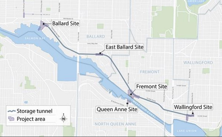 View allThe Joint Ship Canal Water Quality Project includes the construction of an underground storage tunnel to reduce the amount of polluted stormwater and sewage that would otherwise flow, during periods of heavy rainfall, into the Lake Washington Ship Canal, Salmon Bay, and Lake Union. This is a joint project between Seattle Public Utilities and the King County Wastewater Treatment Division, which will construct a storage tunnel that will stretch 2.7 miles from the Seattle neighborhoods of Ballard and Wallingford. The boring of the tunnel was officially completed on June 15, 2023. The storage tunnel will have the capacity to store more than 29 million gallons of untreated stormwater and sewage until it can be pumped out and sent to the West Point Treatment Plant for treatment once capacity eases. The tunnel will improve the region’s water quality by eliminating 75 million gallons of untreated stormwater and sewage. Completion of the Joint Ship Canal Project is currently scheduled for August 2026.